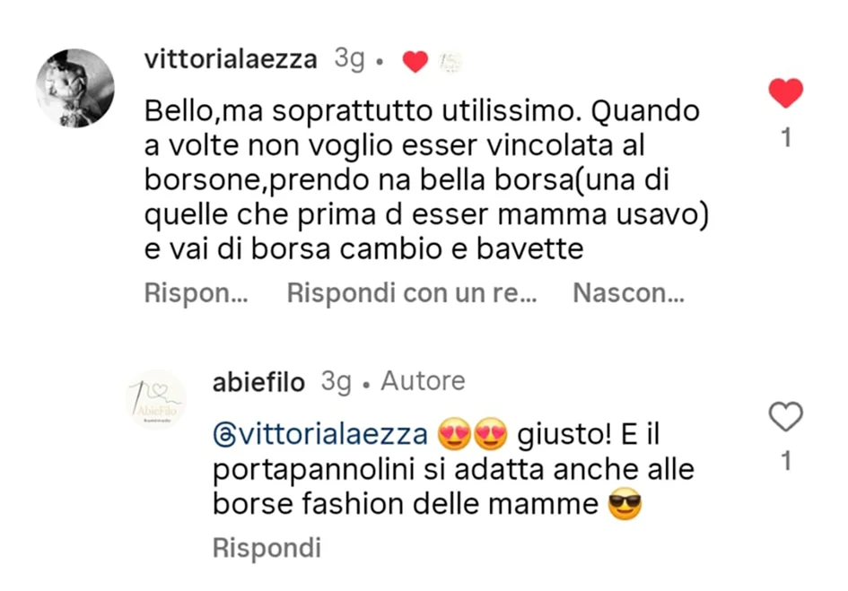Bello, ma soprattutto utilissimo. Quando a volte non voglio esser vincolata al borsone, prendo na bella borsa (una di quelle che prima d’esser mamma usavo) e vai di borsa cambio e bavette