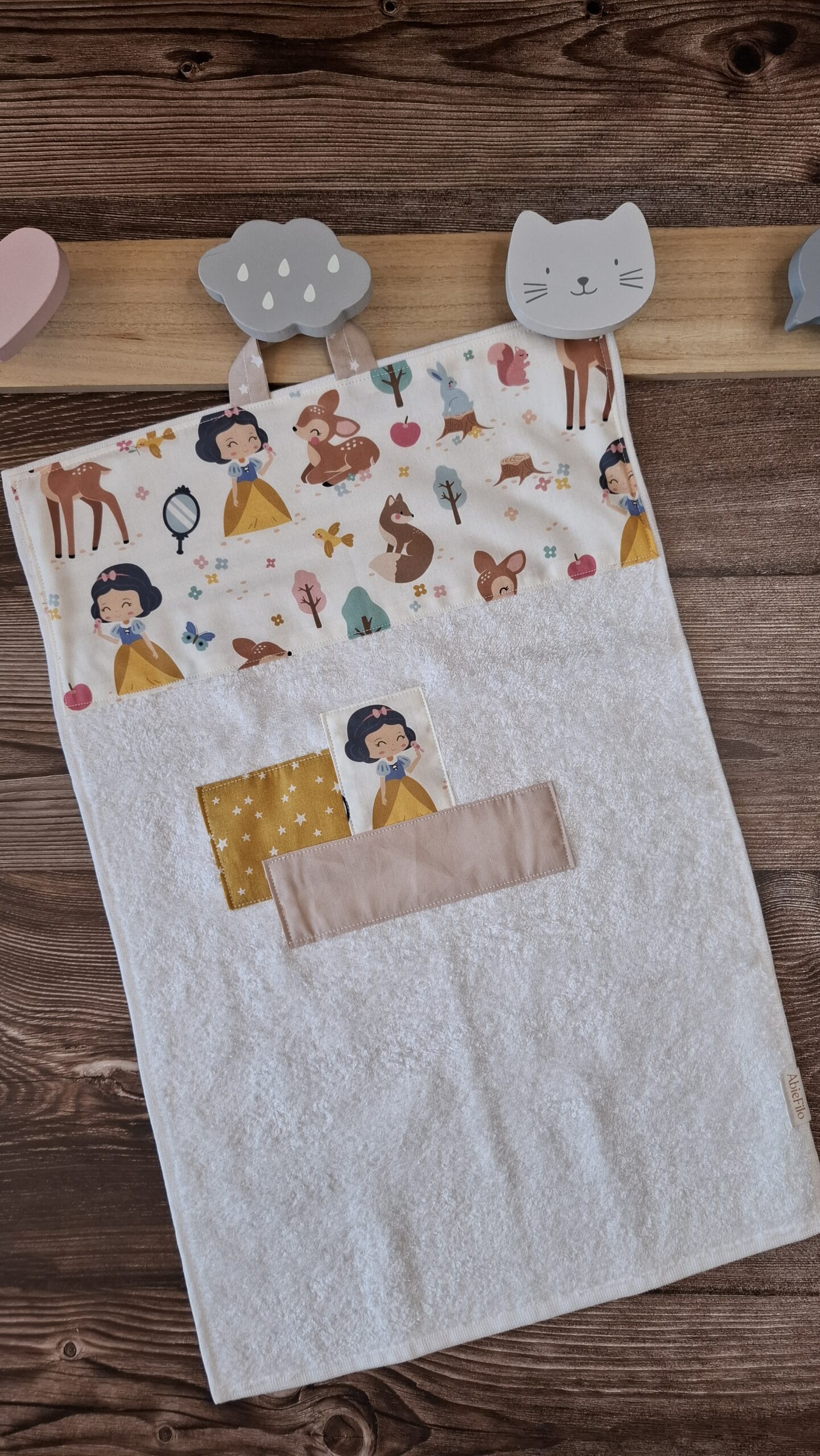 Un asciugamano pensato per accompagnare i più piccoli nelle loro giornate all’asilo.
