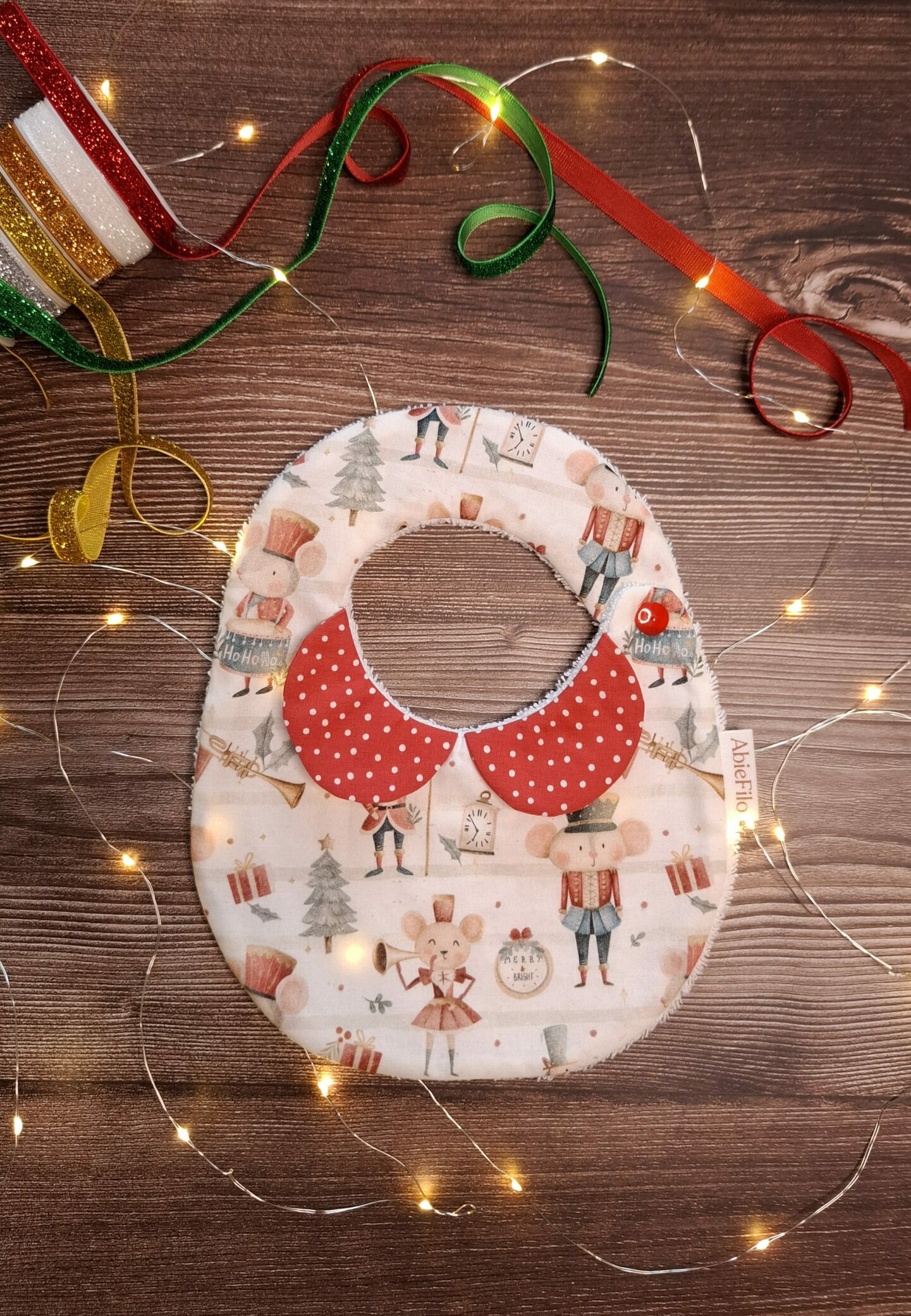 Questa bavetta, realizzata a mano, conquista con il suo delizioso colletto. Accompagna le poppate della tua bambina aggiungendo un tocco di stile.
