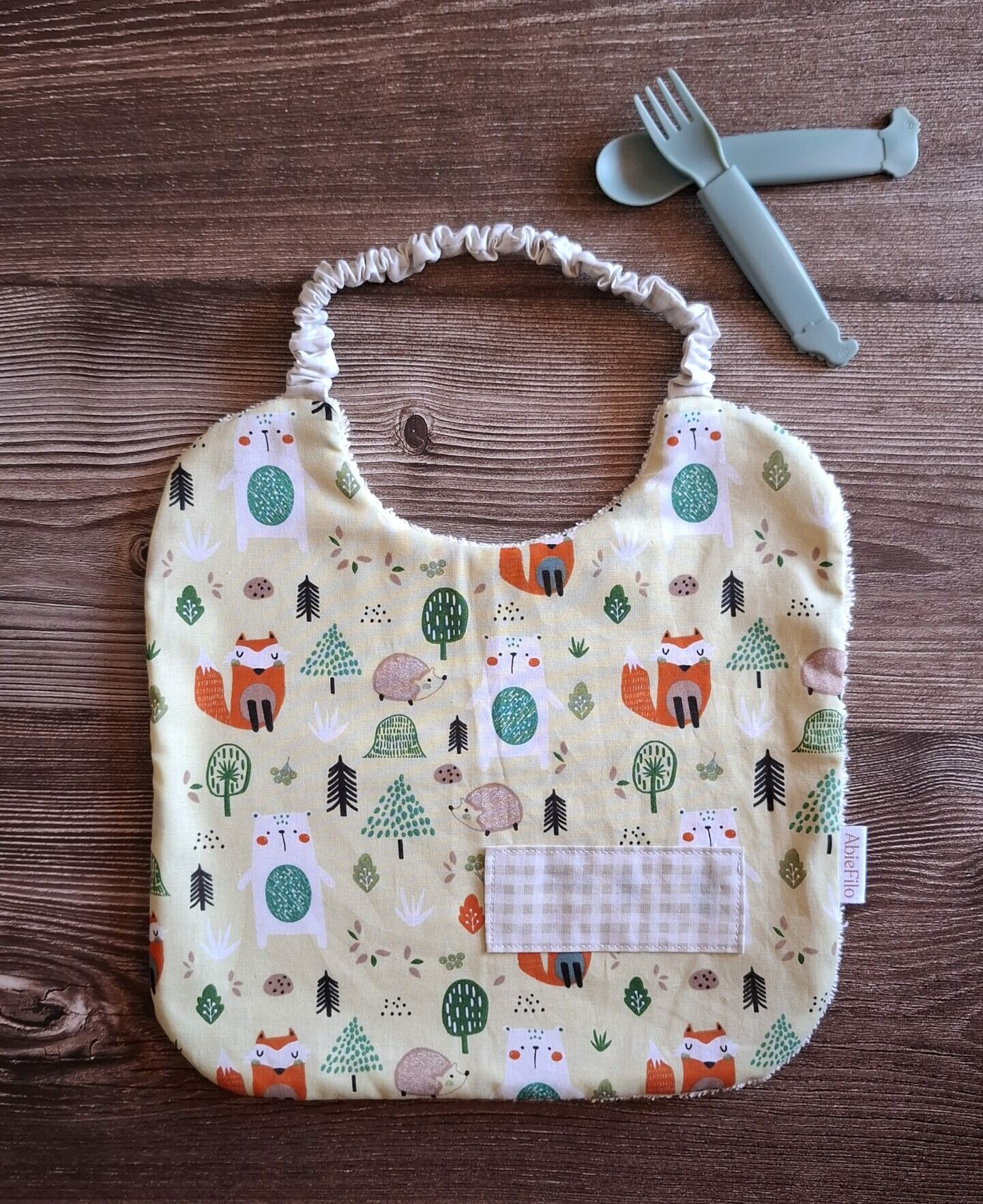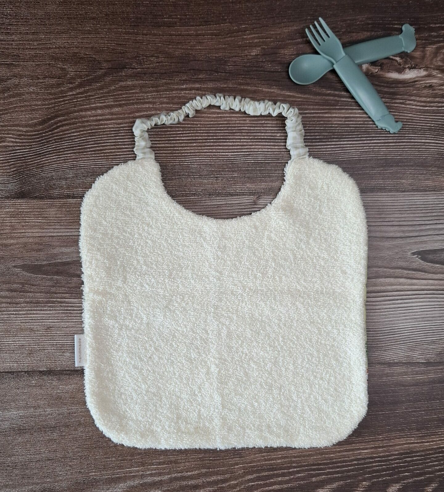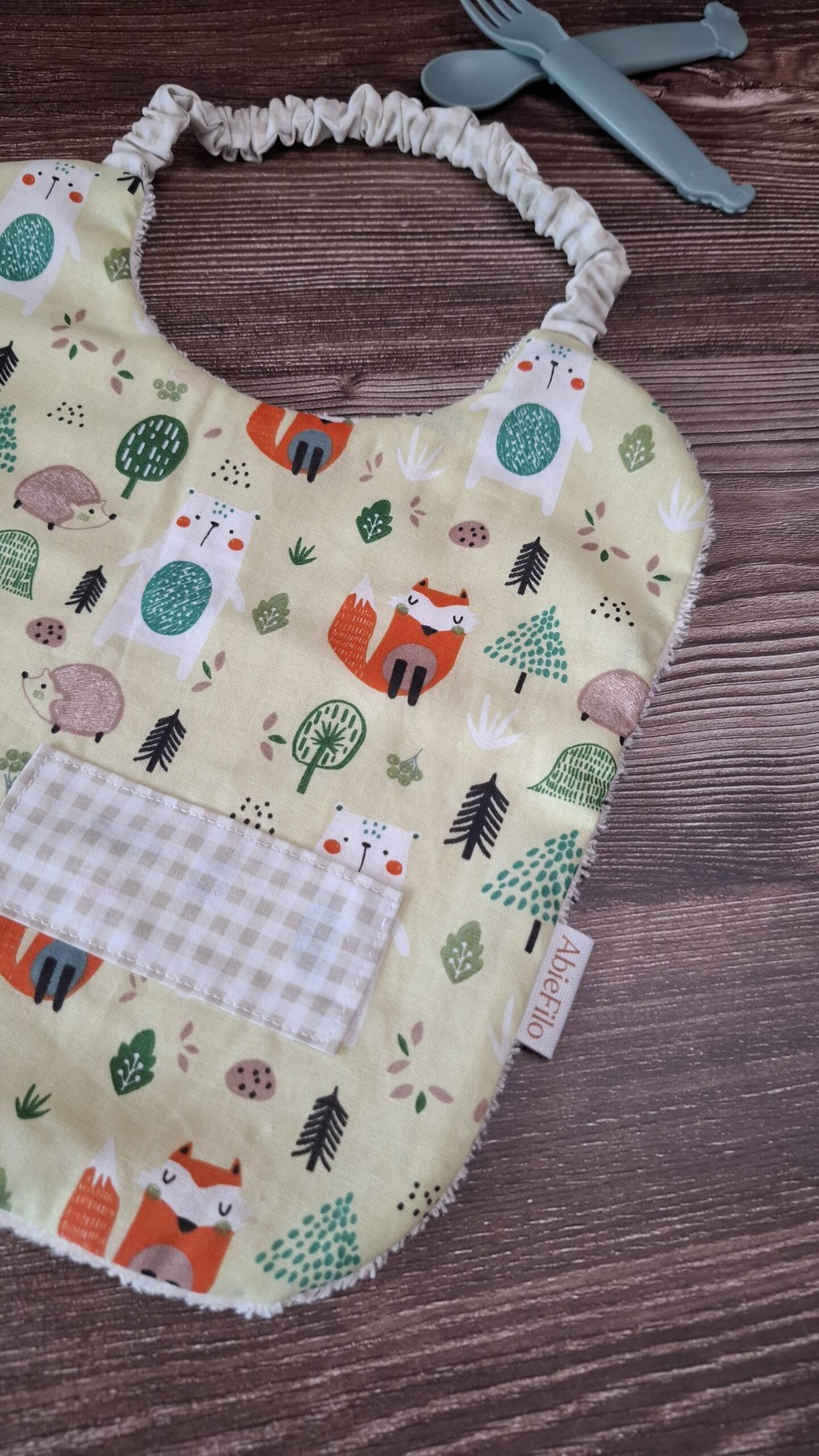 Bavetta realizzata a mano con tessuti morbidi, resistenti e super assorbenti. Accompagna i pasti dei più piccoli, proteggendo i vestitini con praticità e stile.