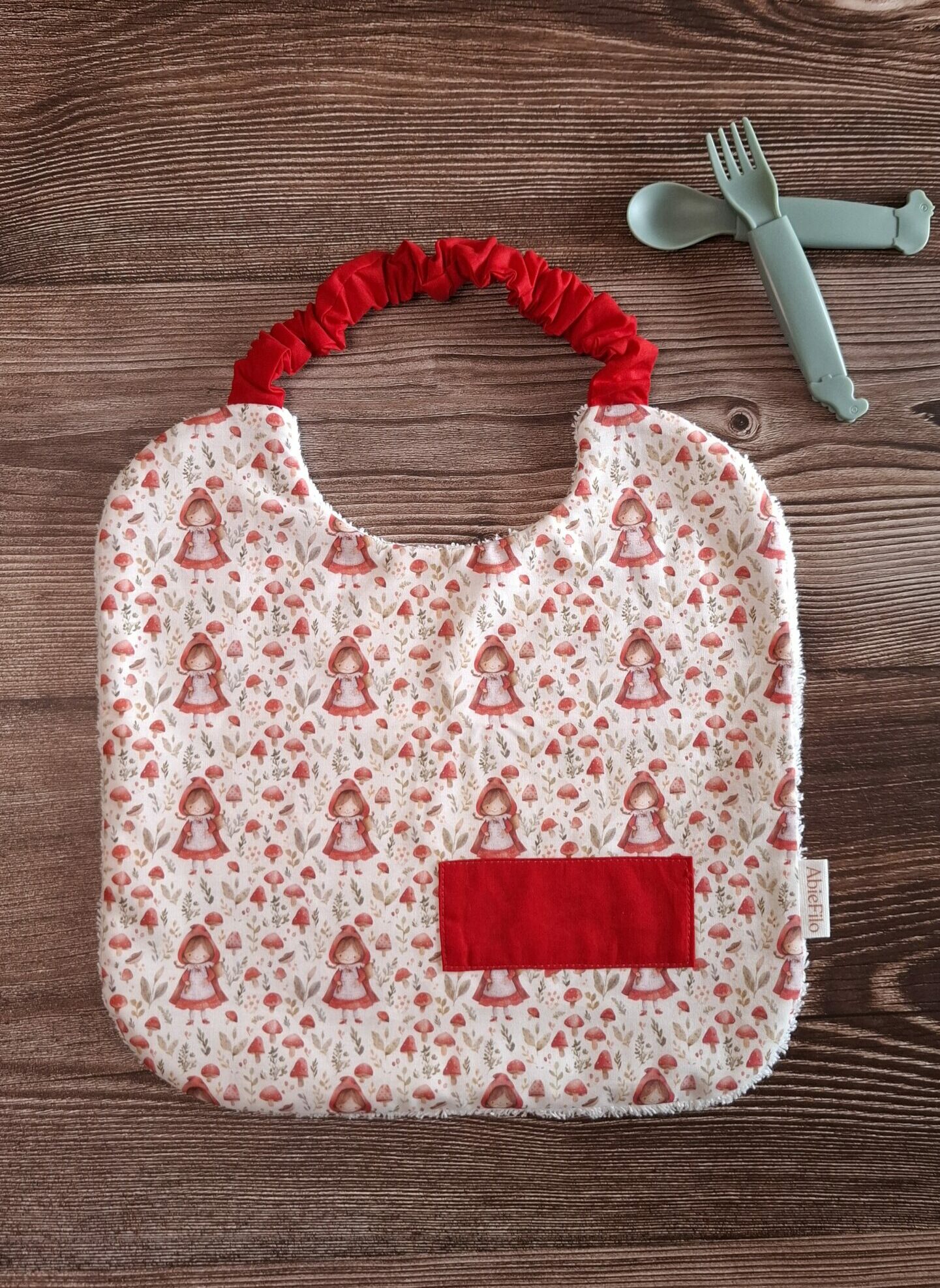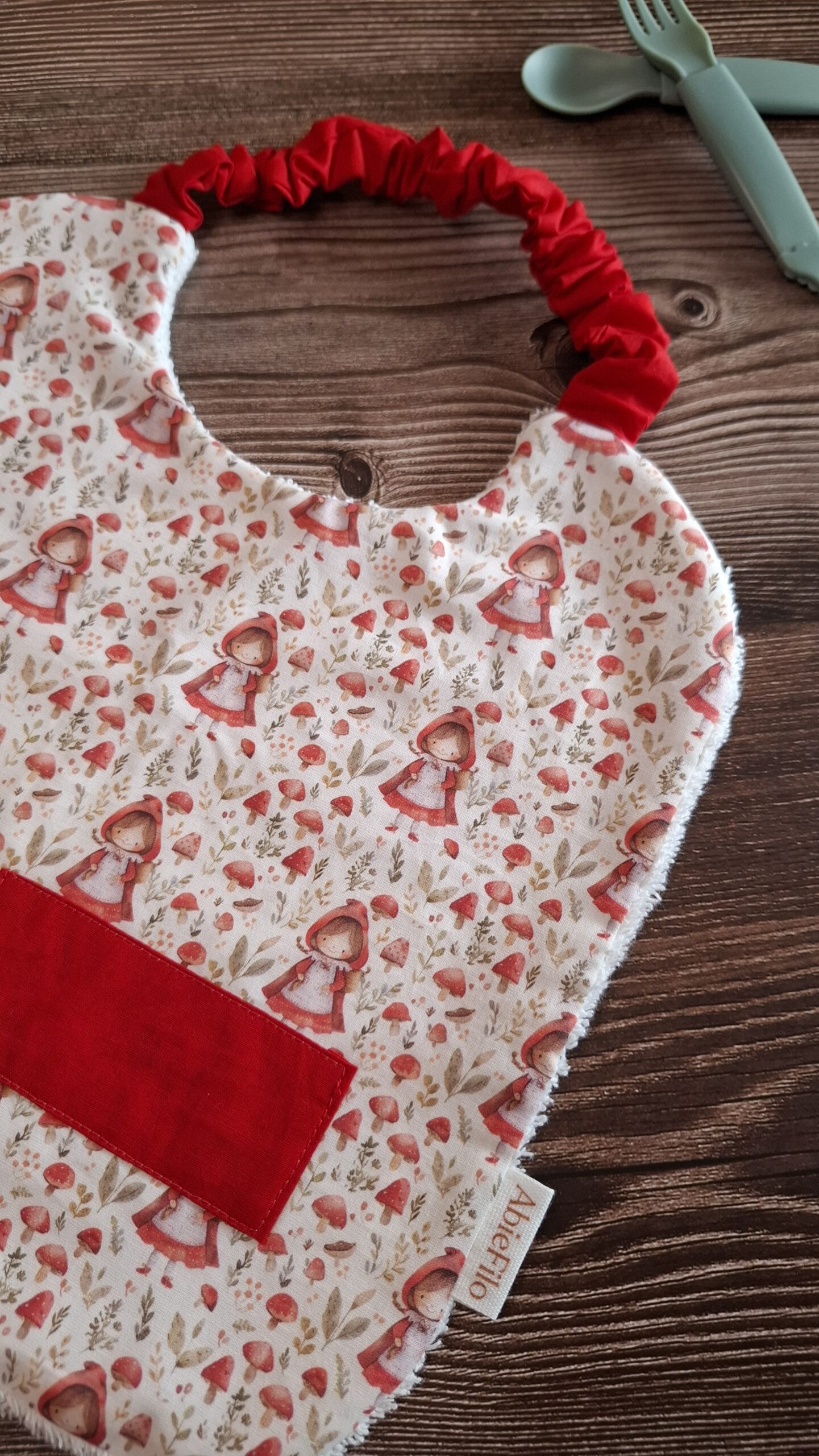 Bavetta realizzata a mano con tessuti morbidi, resistenti e super assorbenti. Accompagna i pasti dei più piccoli, proteggendo i vestitini con praticità e stile.