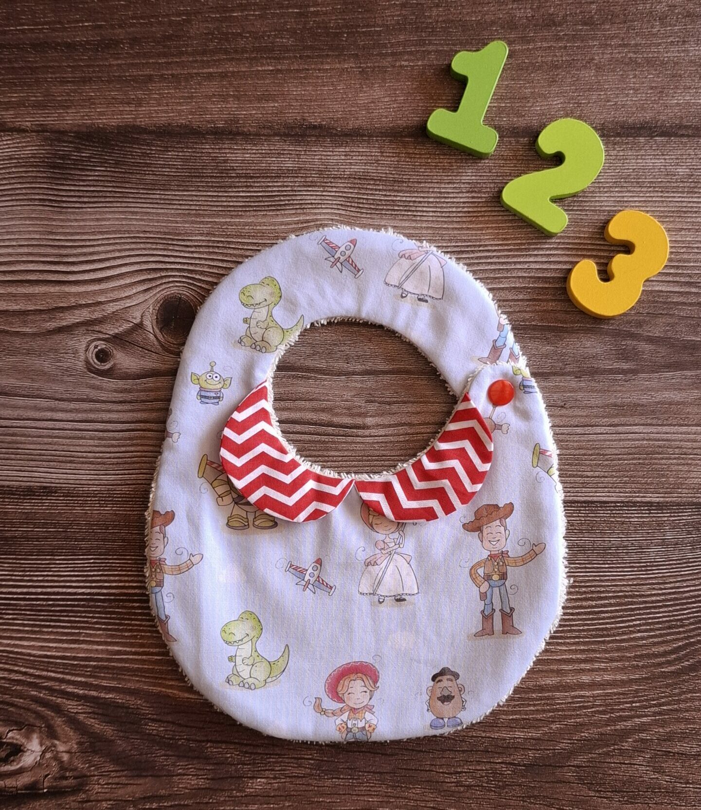 Questa bavetta, realizzata a mano, conquista con il suo delizioso colletto. Accompagna le poppate della tua bambina aggiungendo un tocco di stile.
