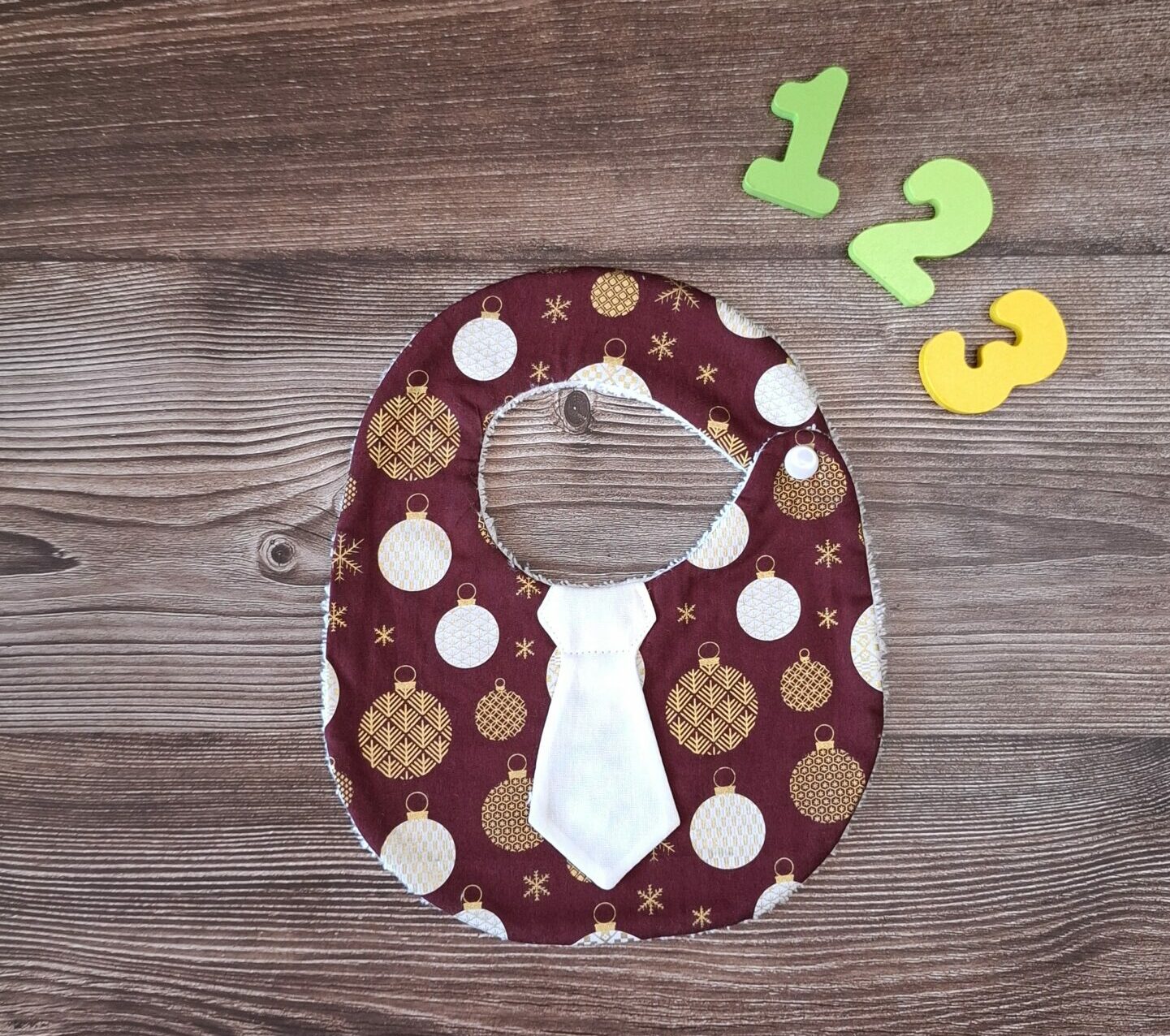 Questa bavetta, realizzata a mano, conquista con la sua elegante cravatta. Accompagna le poppate del tuo bambino aggiungendo un tocco di fascino “dandy”.