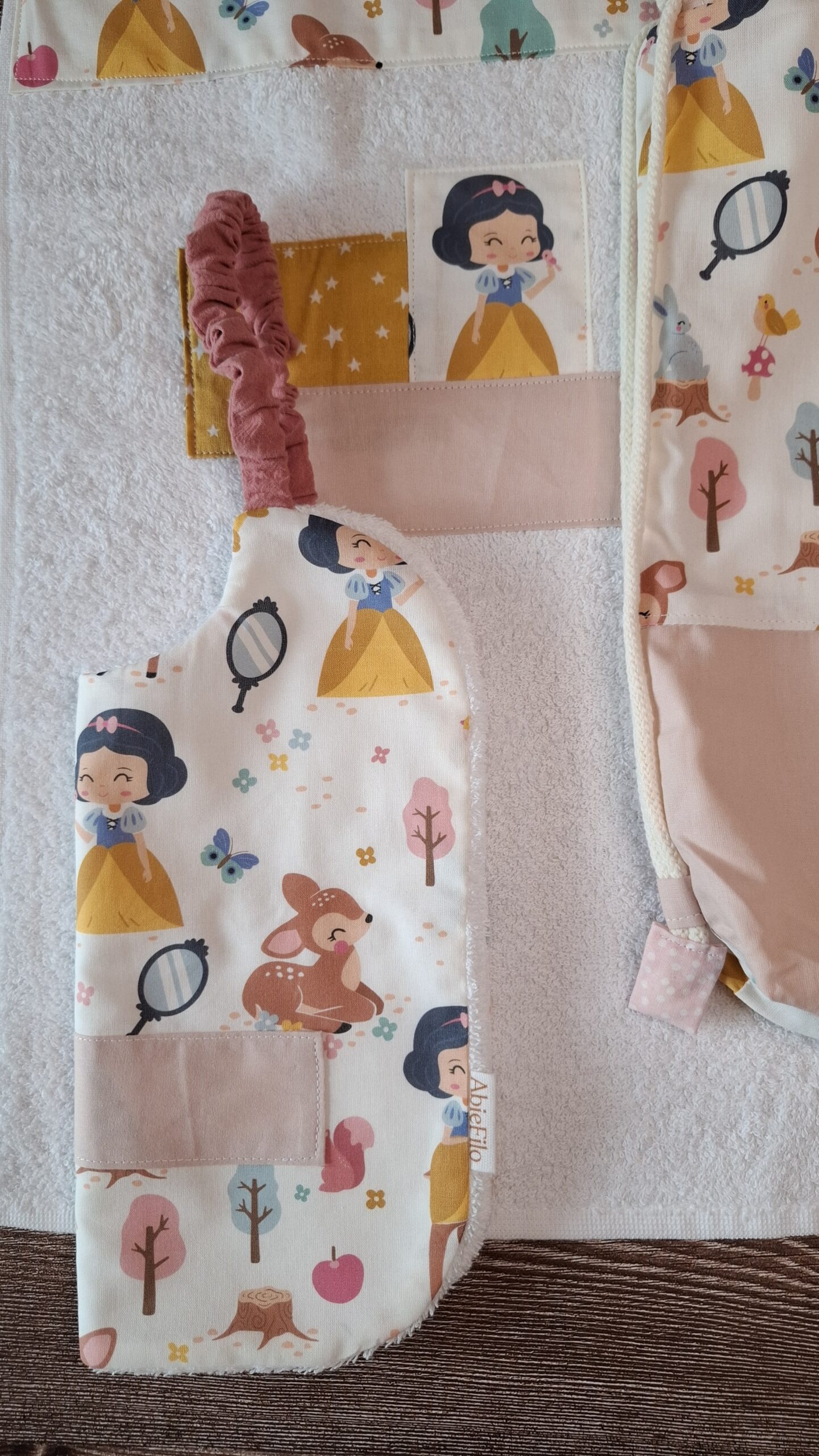 Questo Coordinato asilo artigianale è pensato per accompagnare i primi giorni di scuola e sopratutto per essere pratico, lavabile e a misura di bambino. È anche un’ottima idea regalo per i bimbi che iniziano il nido o la scuola dell’infanzia, un dono utile, ordinato e allegro.