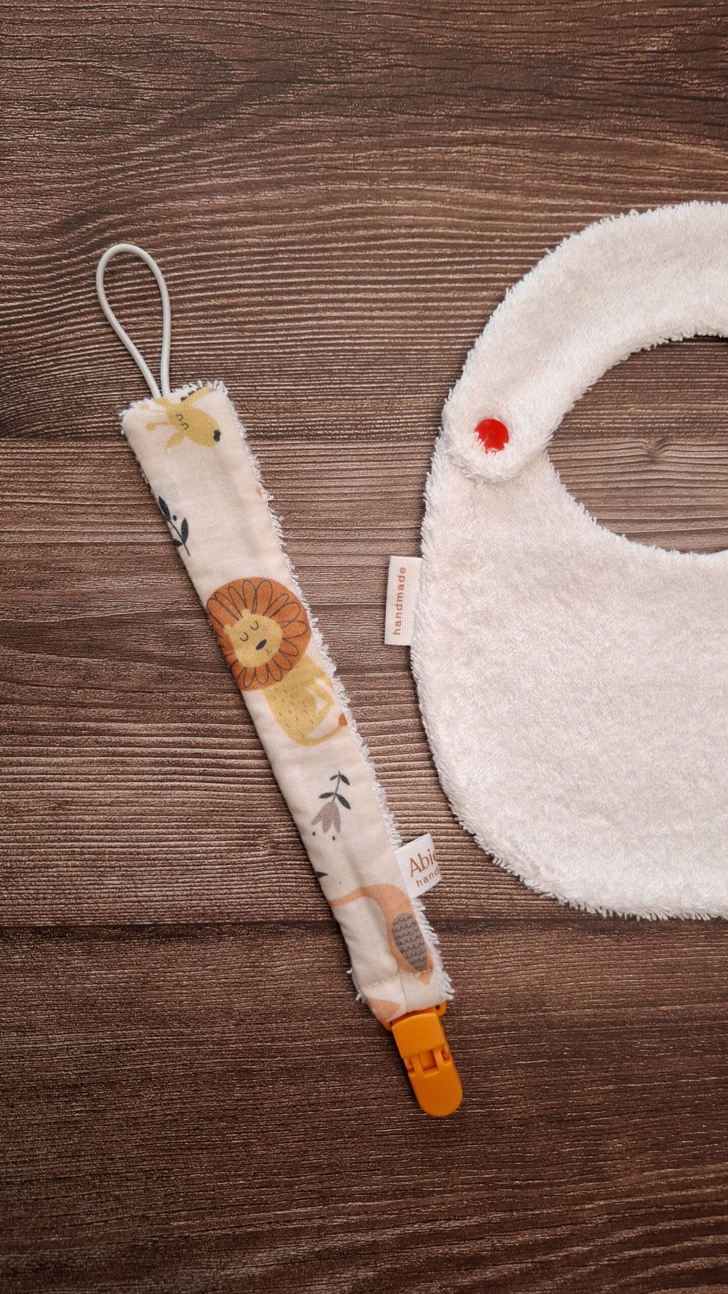Elegante e sicuro, questo portaciuccio artigianale è un accessorio indispensabile per i primi mesi. Morbido e resistente, mantiene il ciuccio a portata di mano evitando la caduta o lo smarrimento.