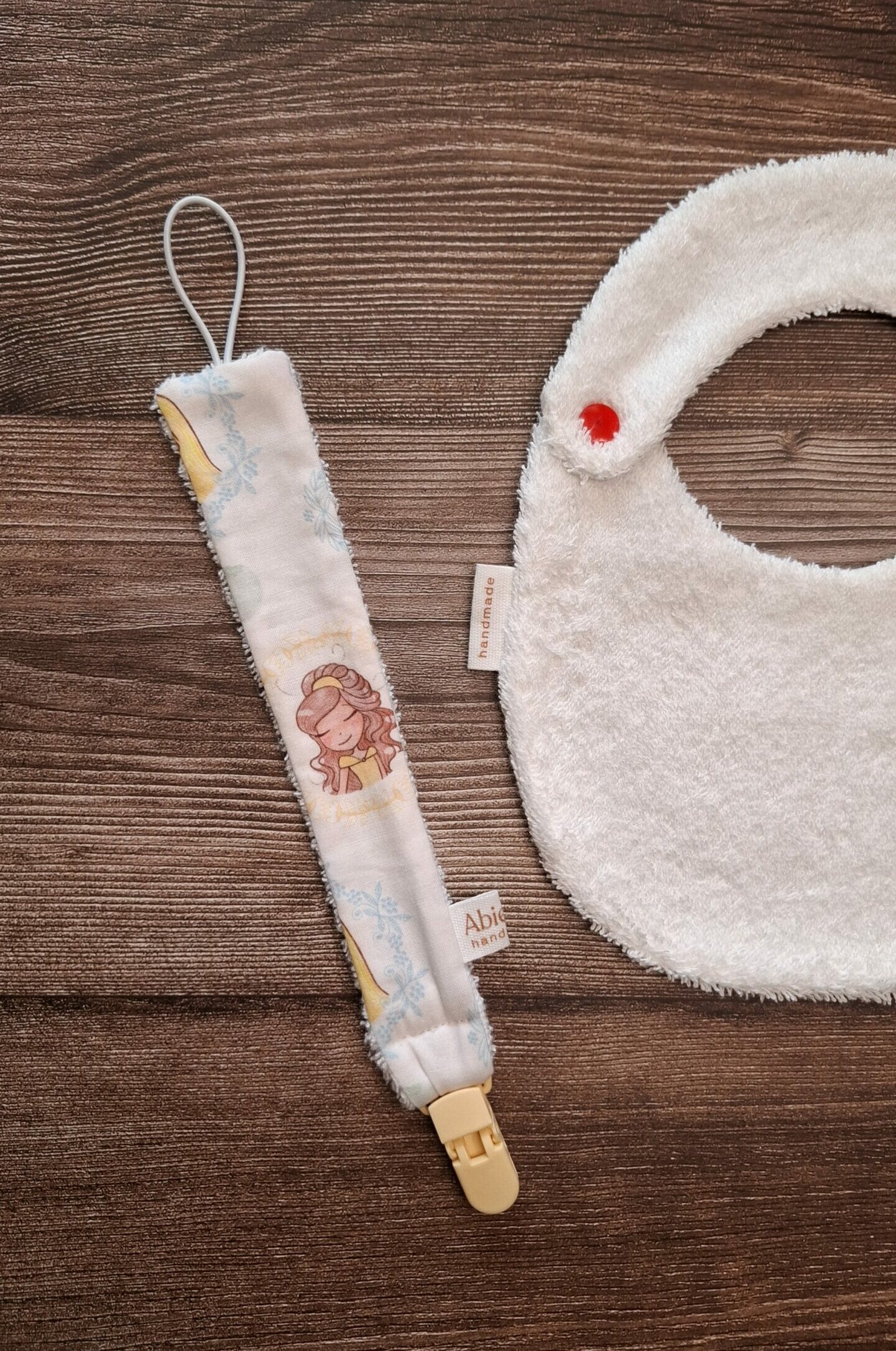 Elegante e sicuro, questo portaciuccio artigianale è un accessorio indispensabile per i primi mesi. Morbido e resistente, mantiene il ciuccio a portata di mano evitando la caduta o lo smarrimento.