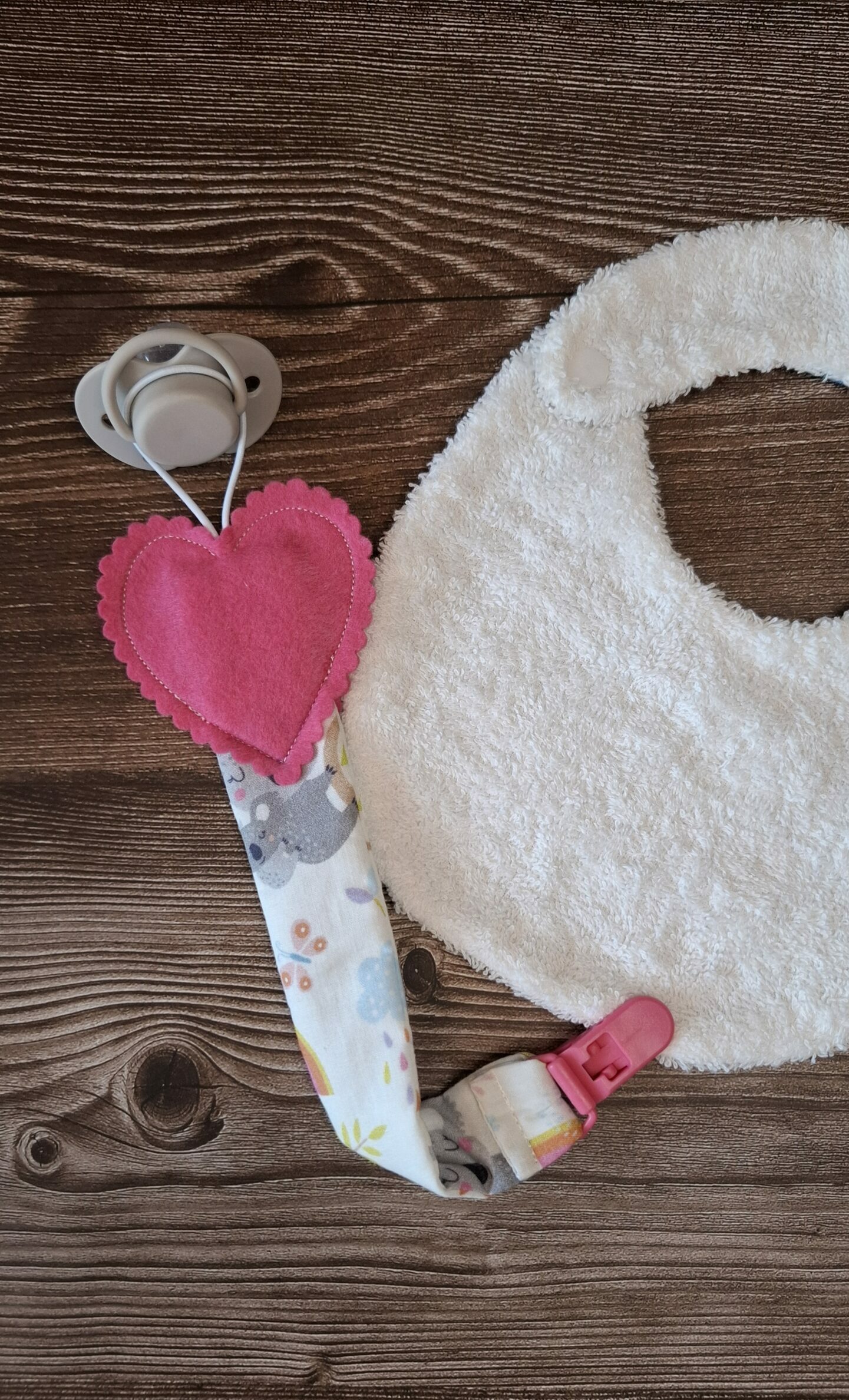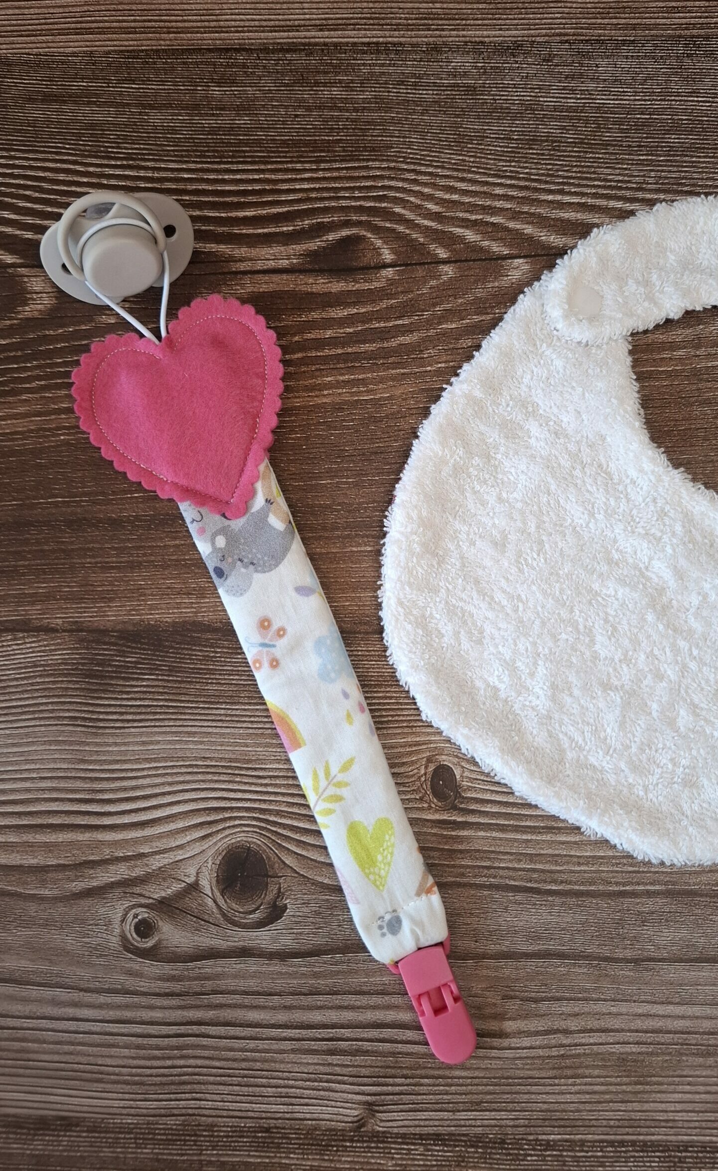 Elegante e sicuro, questo portaciuccio artigianale è un accessorio indispensabile per i primi mesi. Morbido e resistente, mantiene il ciuccio a portata di mano evitando la caduta o lo smarrimento.