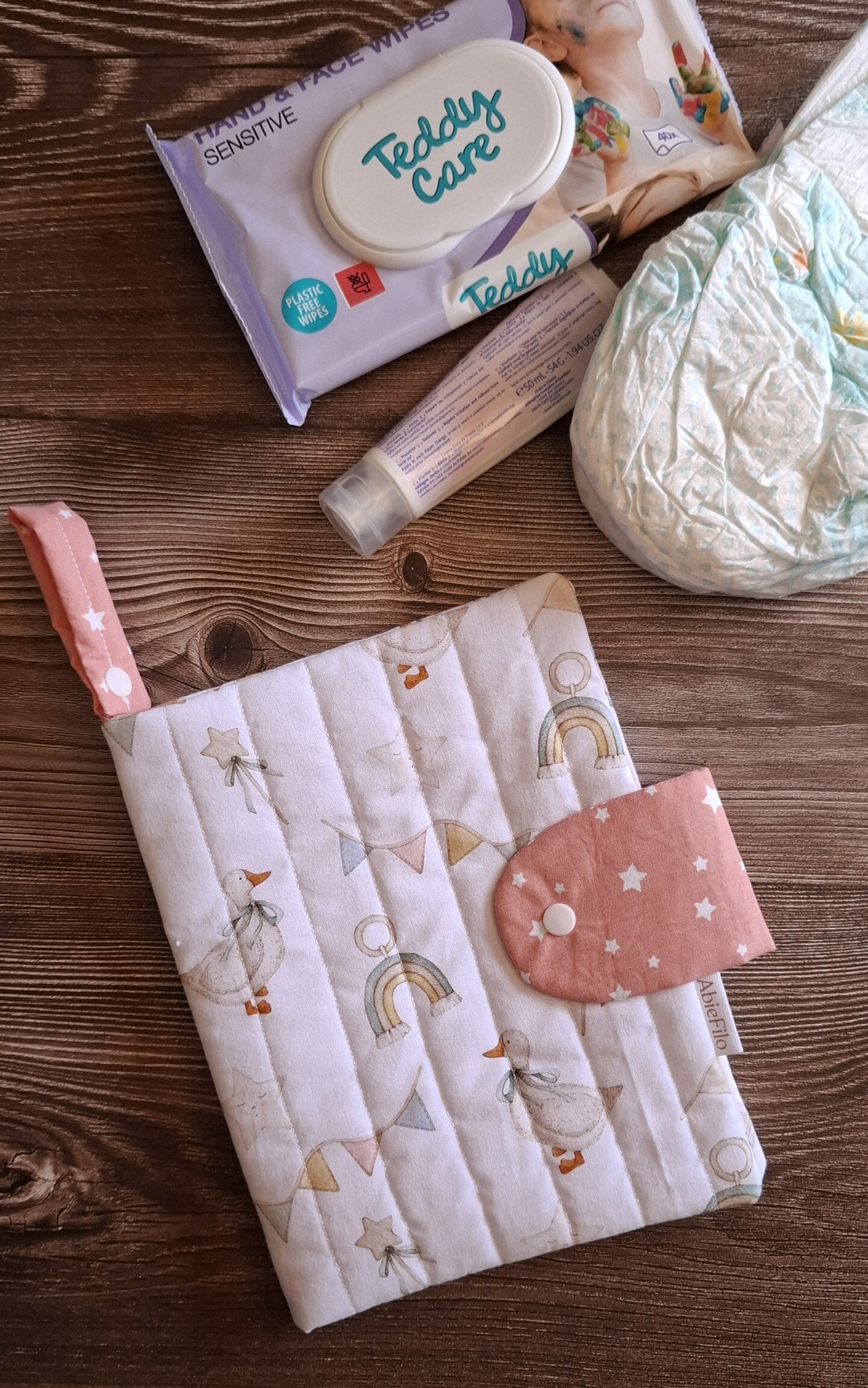 Organizzato, capiente e colorato: questo porta pannolini è il compagno ideale per ogni uscita con il tuo bambino. Ti permette di avere tutto quello che serve per il cambio a portata di mano, in modo pratico e ordinato.