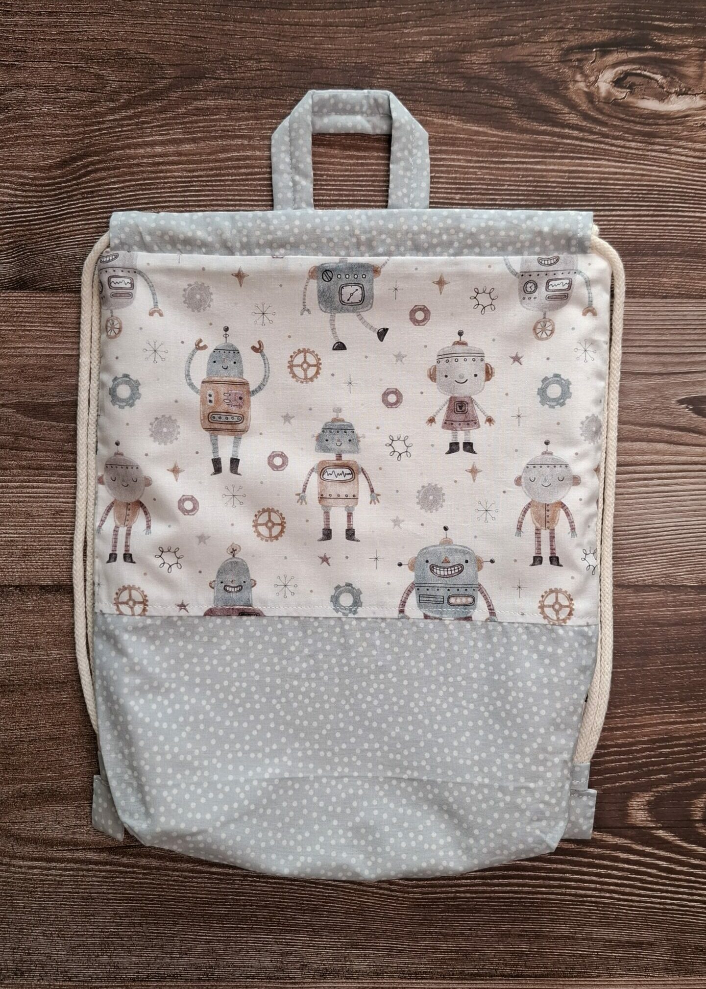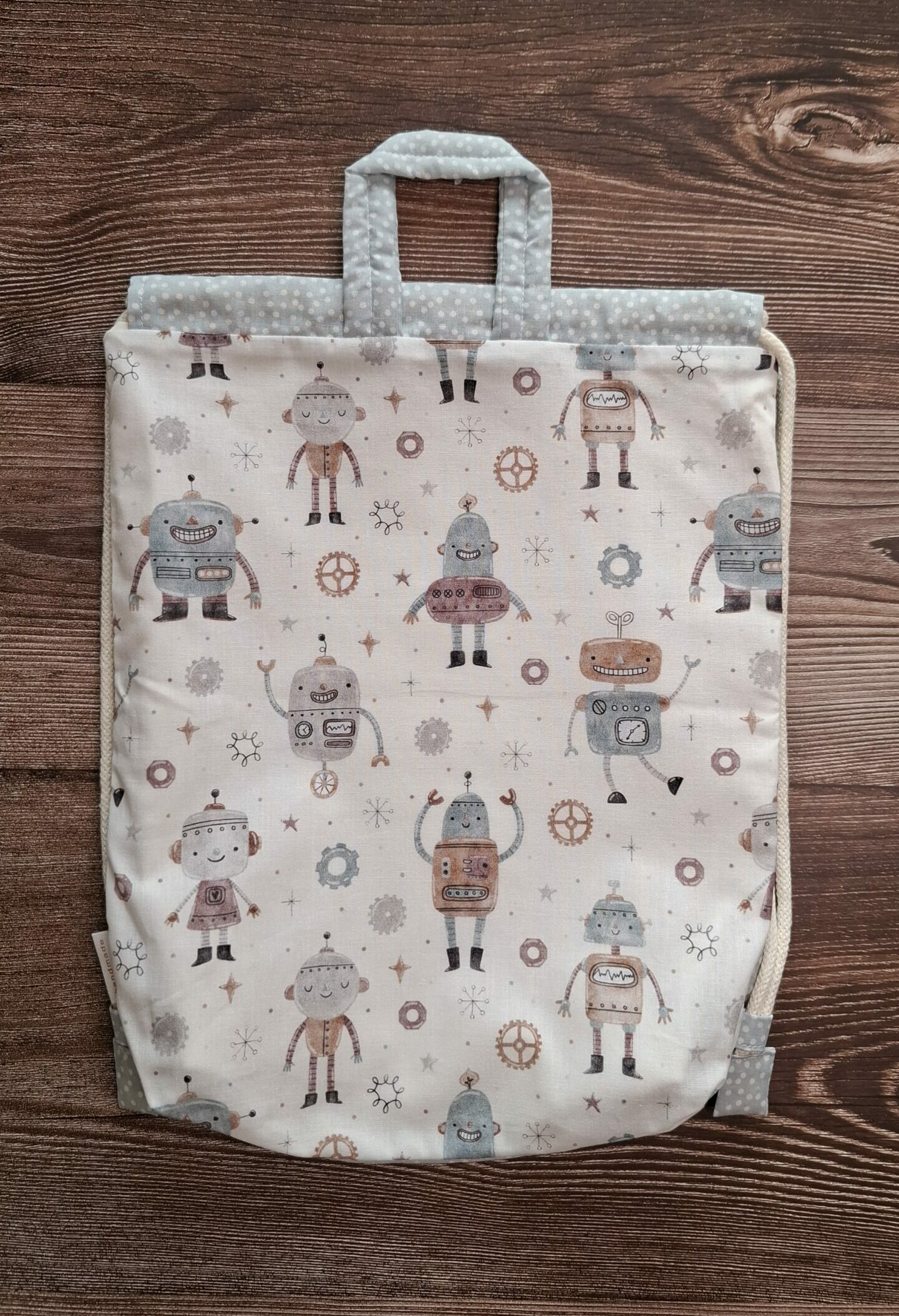 | Chiusura | Doppio sistema con coulisse e manico in tessuto, per portarla anche come borsetta. |