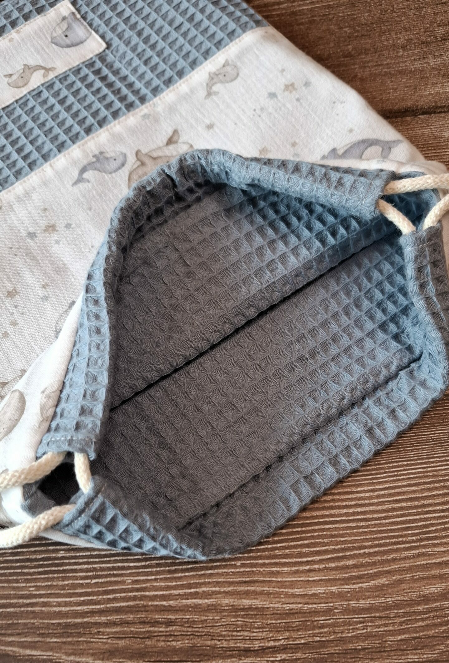 Un sacchetto morbido e pratico, perfetto per accompagnare i primi giorni del tuo bambino. Pensato per contenere il primo cambio e per tenere in ordine gli accessori essenziali, diventerà un alleato utile a casa e in viaggio.