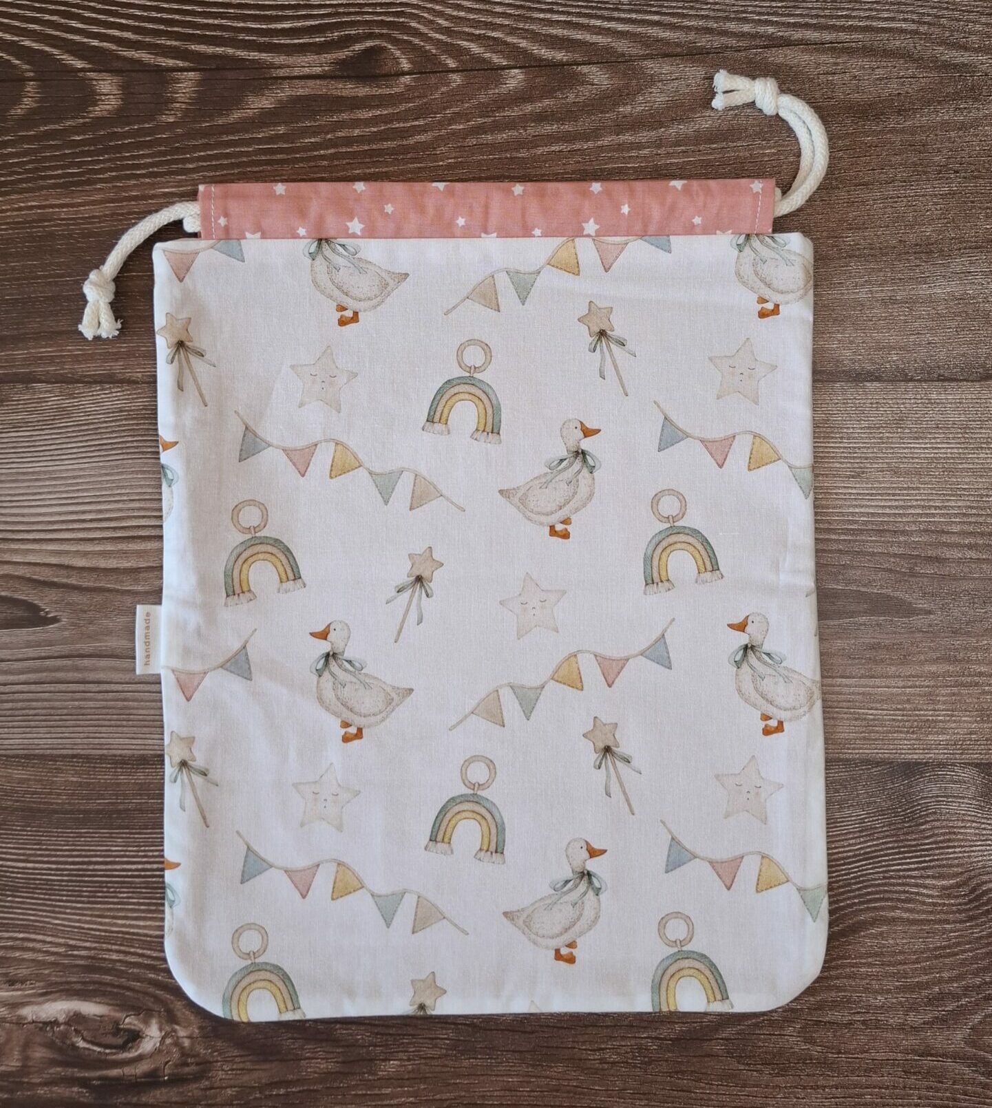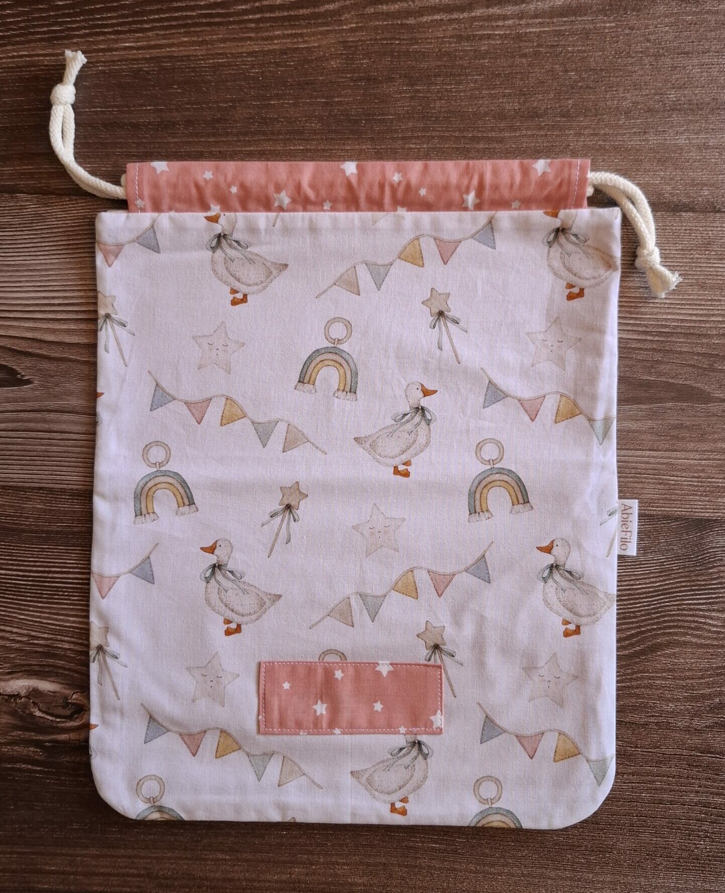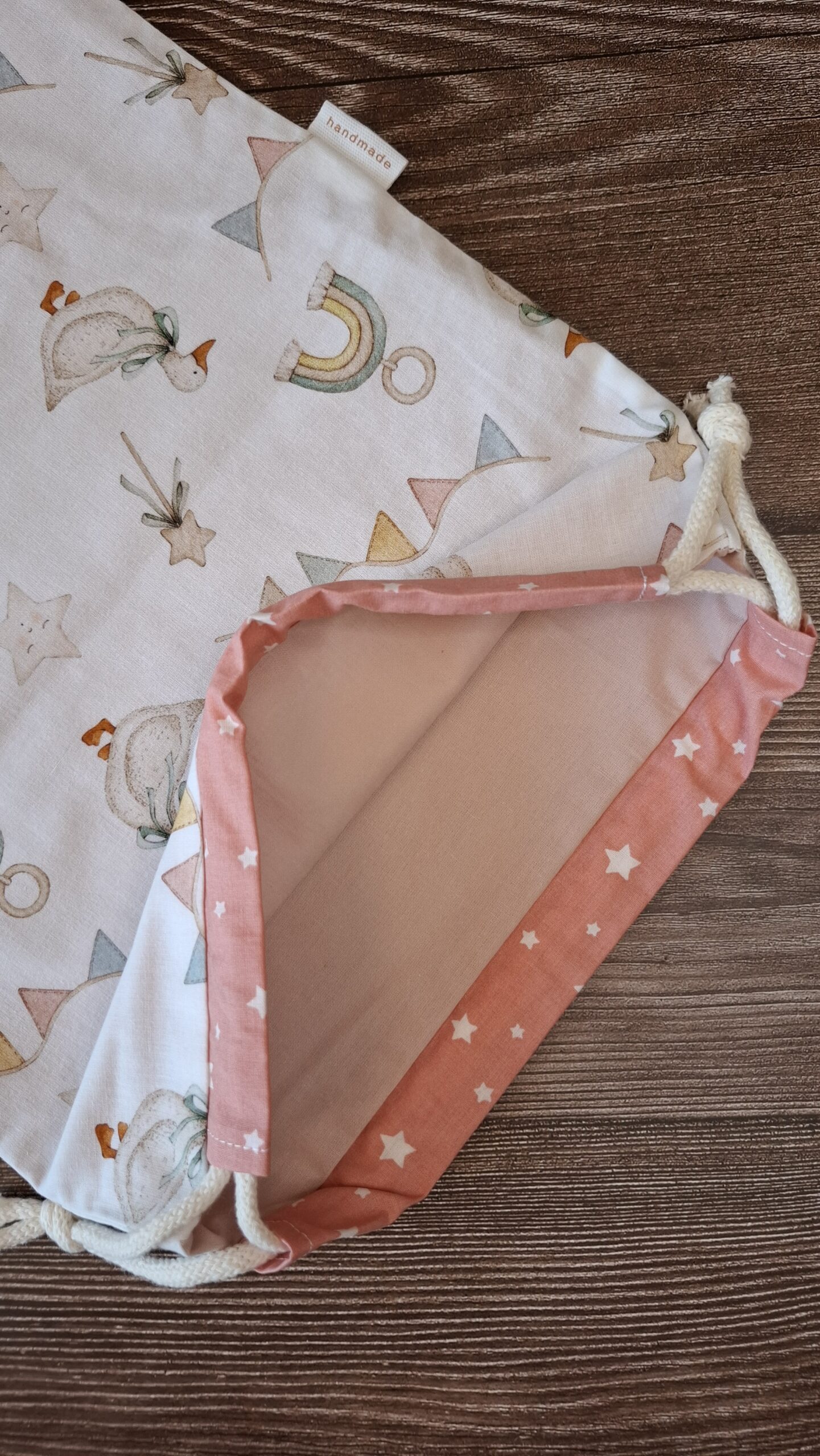 Un sacchetto morbido e pratico, perfetto per accompagnare i primi giorni del tuo bambino. Pensato per contenere il primo cambio e per tenere in ordine gli accessori essenziali, diventerà un alleato utile a casa e in viaggio.